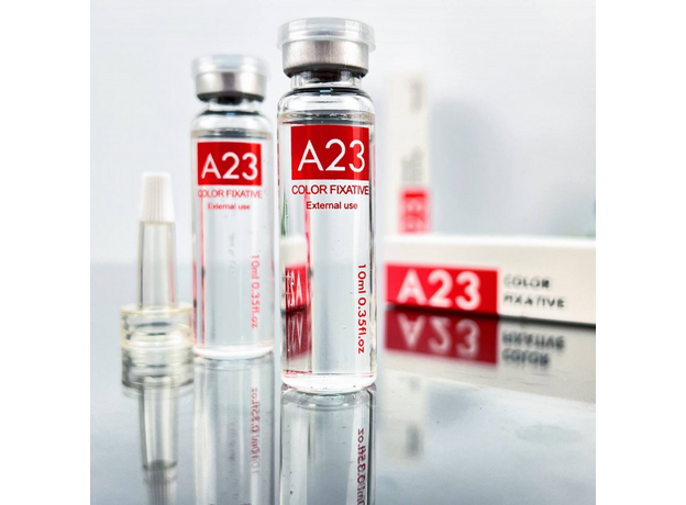 A23 este un anestezic lichid cu dublu rol, conceput pentru a fi aplicat în timpul procedurii, având rolul de a reduce sensibilitatea, reduce timpul de lucru și de a oferi o experiență mai plăcută clientului, iar totodată are rolul de fixare a culorii și se recomandă pentru piele deschisă.